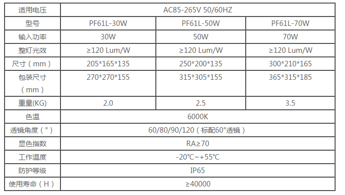 6. IP65防護(hù)等級(jí),整燈光效大于120Lum/W