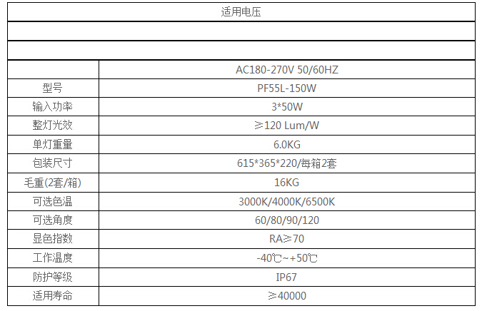 led泛光燈產(chǎn)品特點(diǎn): 1.COB陶瓷光源,4KV耐壓,防雷效果好 2.玻璃透鏡,可靠二次光學(xué),抗黃變,無形變 3.全通透設(shè)計(jì),縱向拉伸,對(duì)流效果好,散熱快 4.IP67防水等級(jí),特殊氧化處理簡化燈具設(shè)計(jì) 5.多種配光方式,適合做工礦燈、投光燈、泛光燈、 應(yīng)用其廣泛 6.光效大于120Lum/W,符合能源之星標(biāo)準(zhǔn),6000H 光通維持率95.2% led泛光燈適用范圍: 廠房、車間、倉庫、廣場、廣告牌等等 led泛光燈安裝方式: 支架 吊桿 吊鏈;結(jié)構(gòu)輕巧,安裝方便