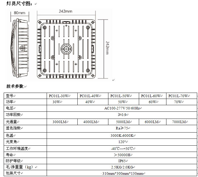 LED頂棚燈燈具特點: 1.燈殼采用鋁合金高壓壓鑄,結(jié)構(gòu)輕巧,牢固,耐腐蝕。 2.透光罩采用高透光PC材料壓制而成,經(jīng)棱鏡折射光線柔和。 3.新型硅橡膠密封圈,耐高溫250度以上,保證硅橡膠不老化。 4.長期保證防護(hù)等級IP65,采用耐高溫,耐高壓的硅橡膠電線。 5.燈具表面采用靜電噴塑處理,耐高溫性能良好,美觀耐用。 LED頂棚燈應(yīng)用場所: 適用于商場,展示館,體育館,樓梯過道,隧道,地下過道,高架路橋,車庫,停車場及建筑立面,公共走廊等室內(nèi)外照明。