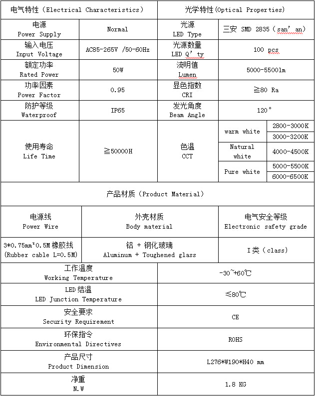 PF73L-50W產(chǎn)品特點(Product features): 1.配合恒流率電源,顯色效果和亮度更出色; 2.了鋁基板面積,可以快速將熱量傳給殼體,增加了燈具的導(dǎo)熱效果 3.蓋咬合設(shè)計有效防止側(cè)邊漏光; 4.等級IP65 PF73L-50W產(chǎn)品規(guī)格(Product Spec):