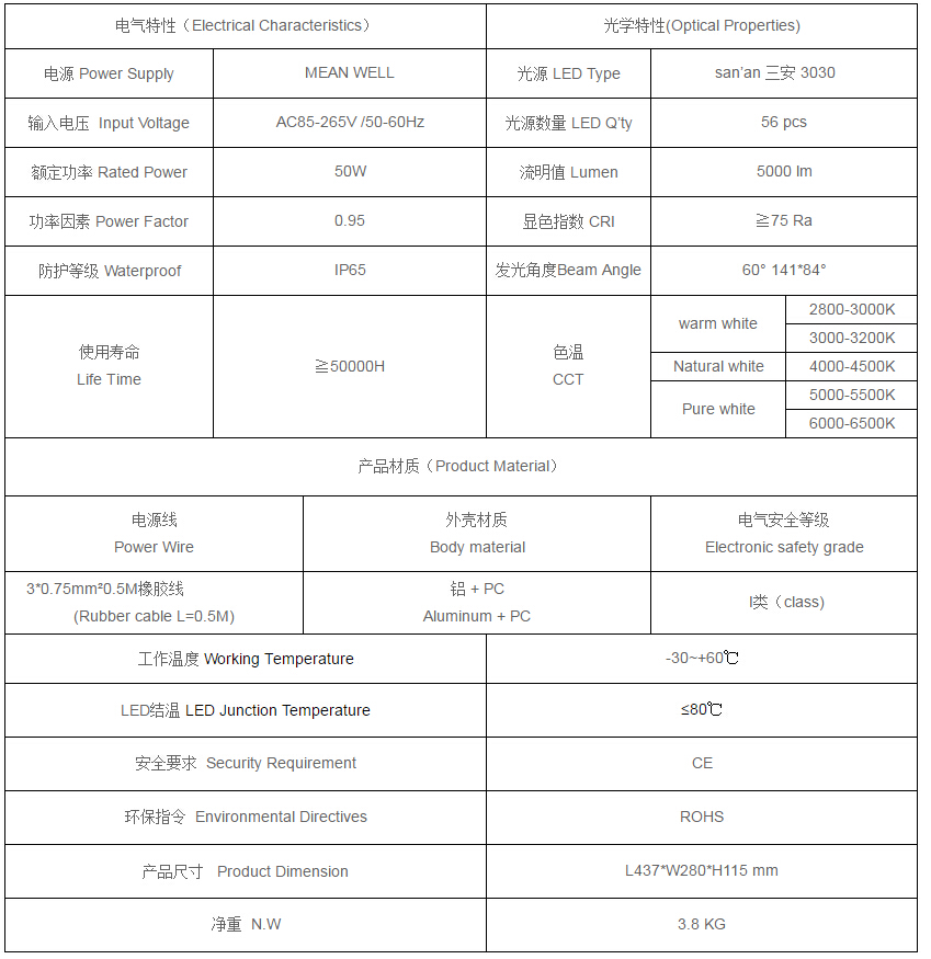 3.鋁加工而成,對流散熱設(shè)計,散熱性能好,保障光源使用壽命