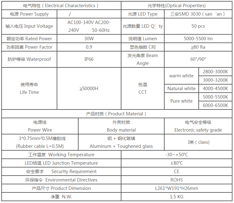 2、以LED光源,使用壽命長50000小時以上,特別適合戶外大面積無人看守照明。